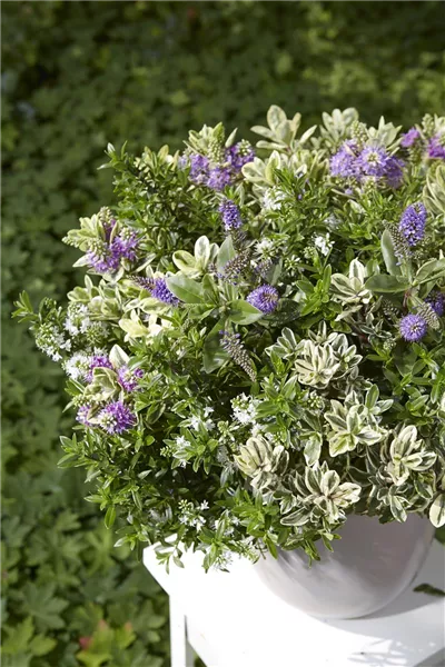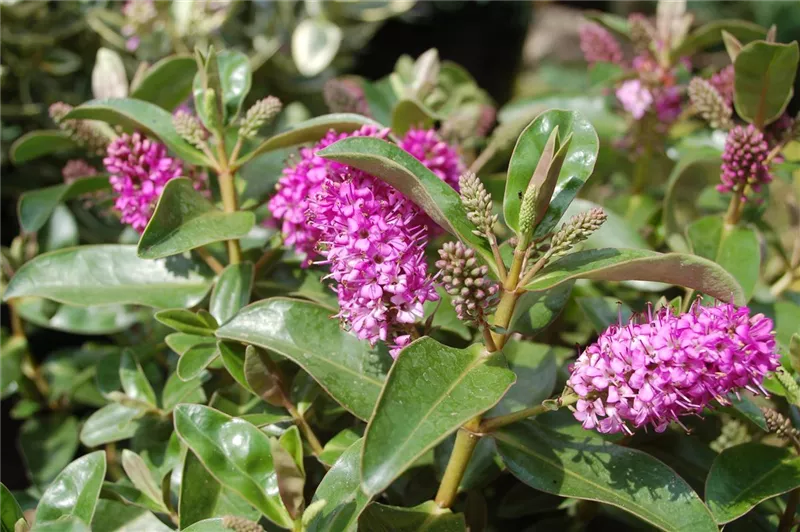Die Strauchveronika (Hebe) gehört zu den beliebtesten spätsommerlichen Blühpflanzen. Bei einer Wuchshöhe und –breite von 40 – 60 Zentimetern, blüht die Strauchveronika in den Farben Violett, Blau, Rot oder Weiß von Juli bis Oktober.